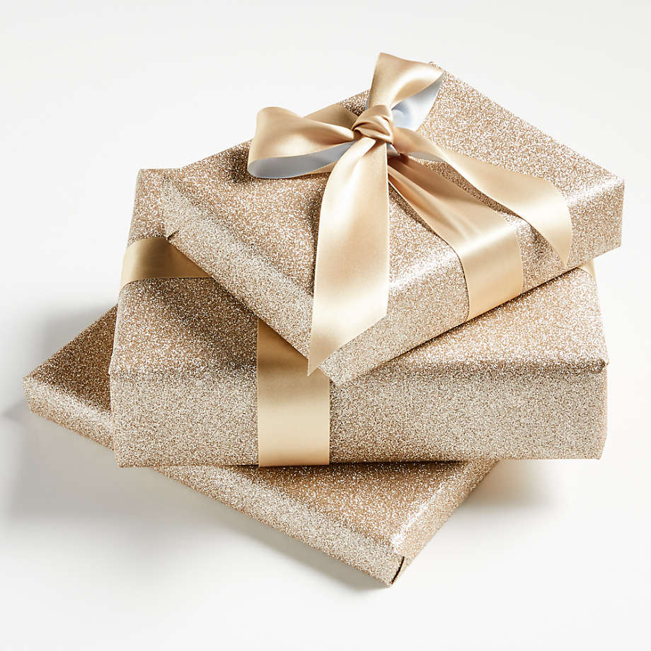 Rose Gold Rectangular Sparkly Glitter Rigid Stacking Gift Boxes