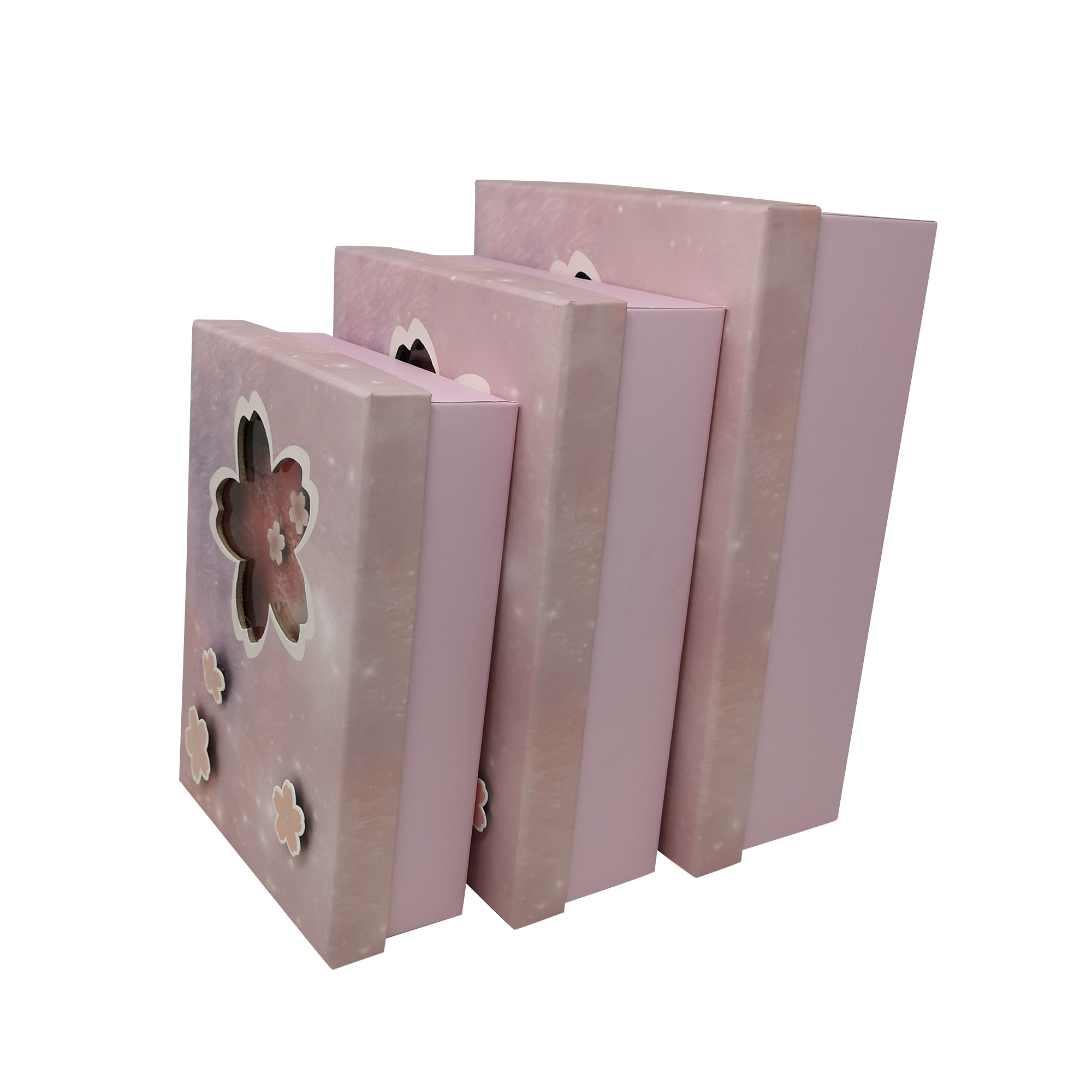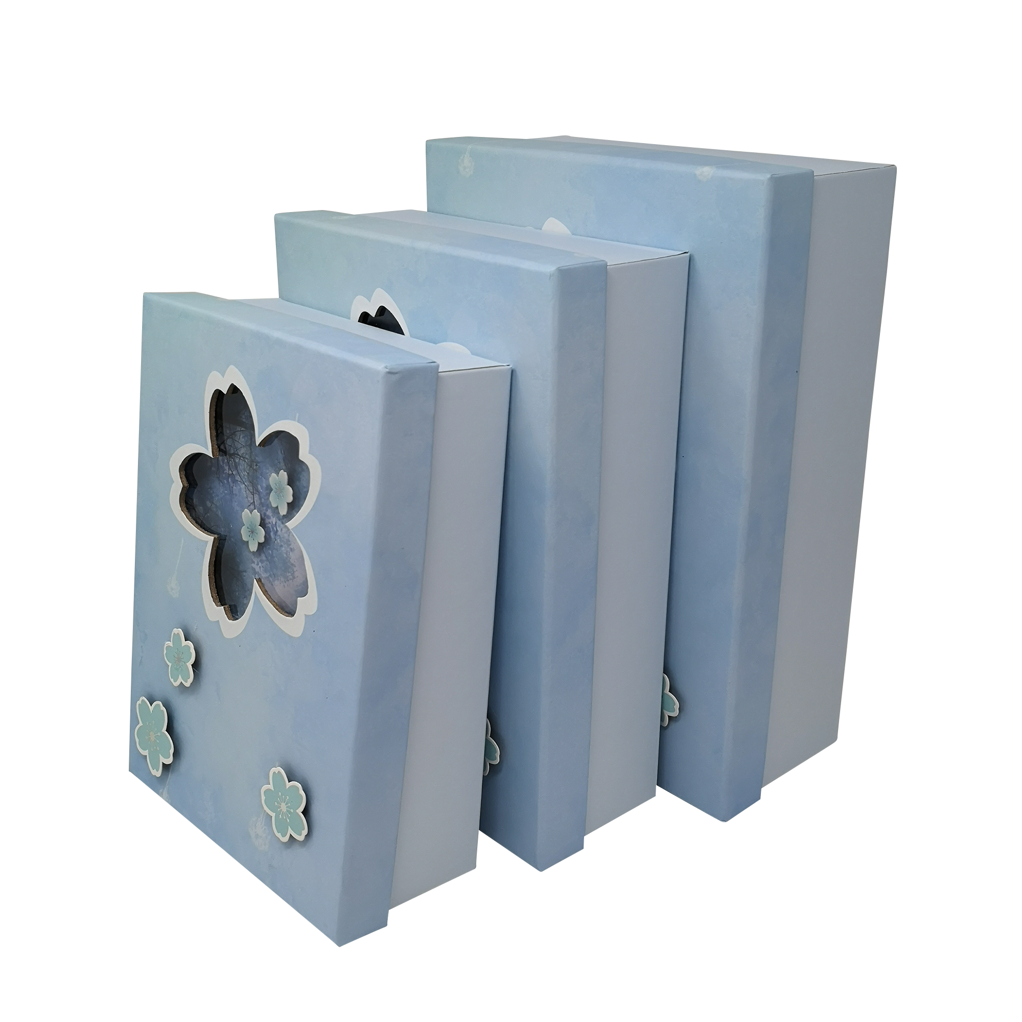 These nested blossom gift boxes are available in a set of 3 different sizes. Large size can house the other 2 boxes. There is a clear flower shape window on the lid which has confetti inside. Use them together or individually as a gift presentation. It can be used for a variety of special occasions including weddings, Christmas, and birthdays.